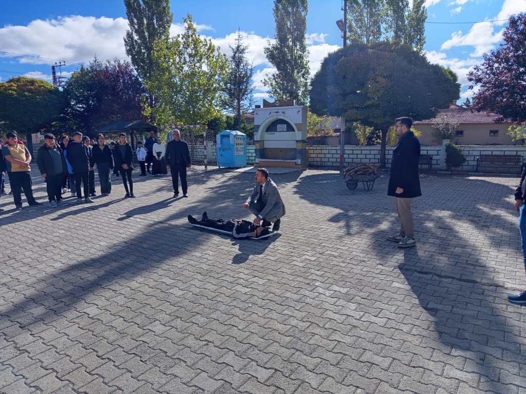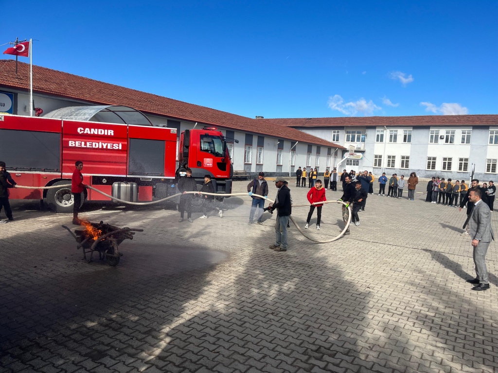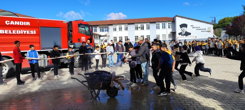 Bakanlığımızın Yayımlamış olduğu Yeşil Vatan Tematik Takvimi kapsamında, EKİM; Afetler ve Dayanıklılık Ayı tatbikat işlemleri doğrultusunda okulumuzda; Deprem, İlk Yardım, Arama Kurtarma ve Yangın tatbikatı eş zamanlı yapımıştır. Yangın Tatbikatı, Çandır Belediyesi İtfaiye ekipleri koordinesi ile gerçekleştirilmiştir.